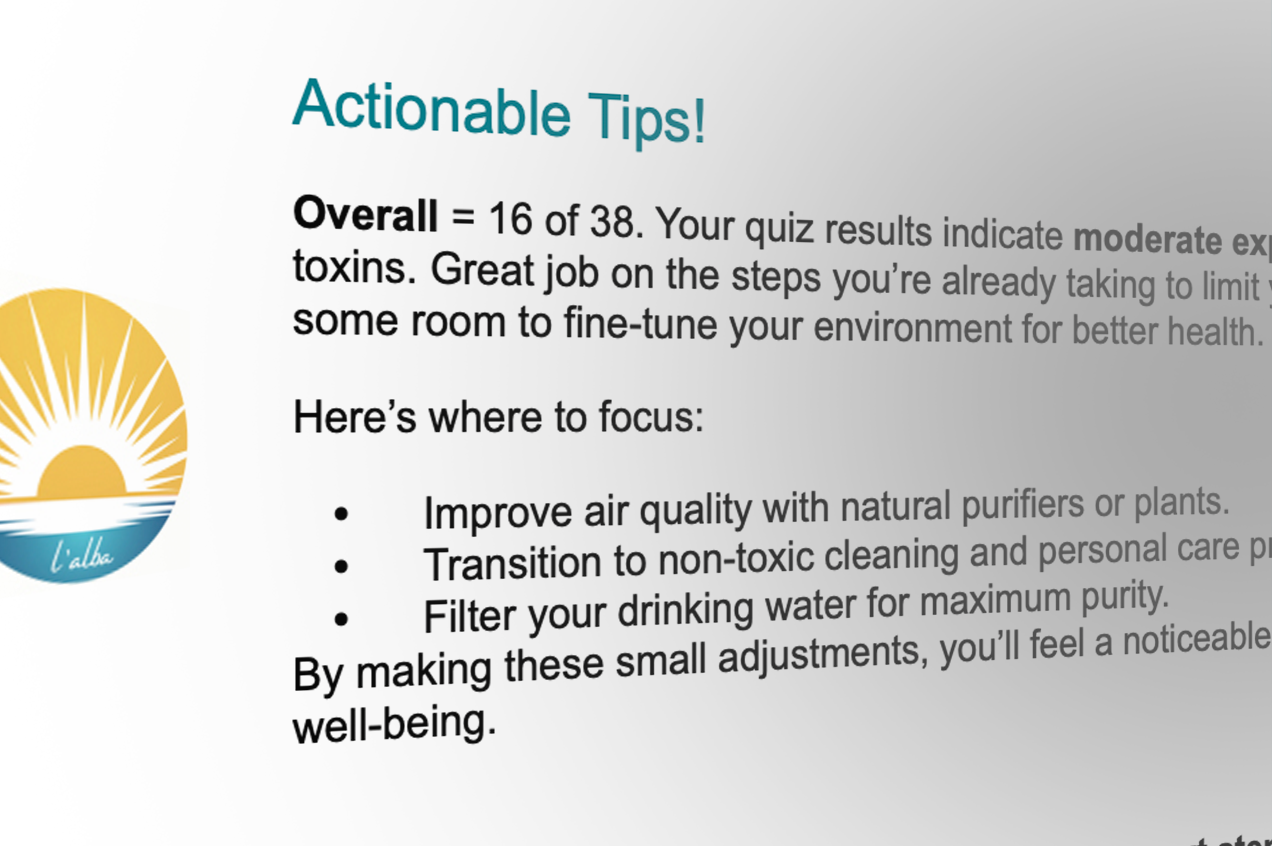 Welcome to your personalized detox assessment! This quiz will help you identify areas in your environment where you may be exposed to toxins. Get actionable tips and the option of a completely custom plan to start your detox journey and reduce your body’s toxic load.